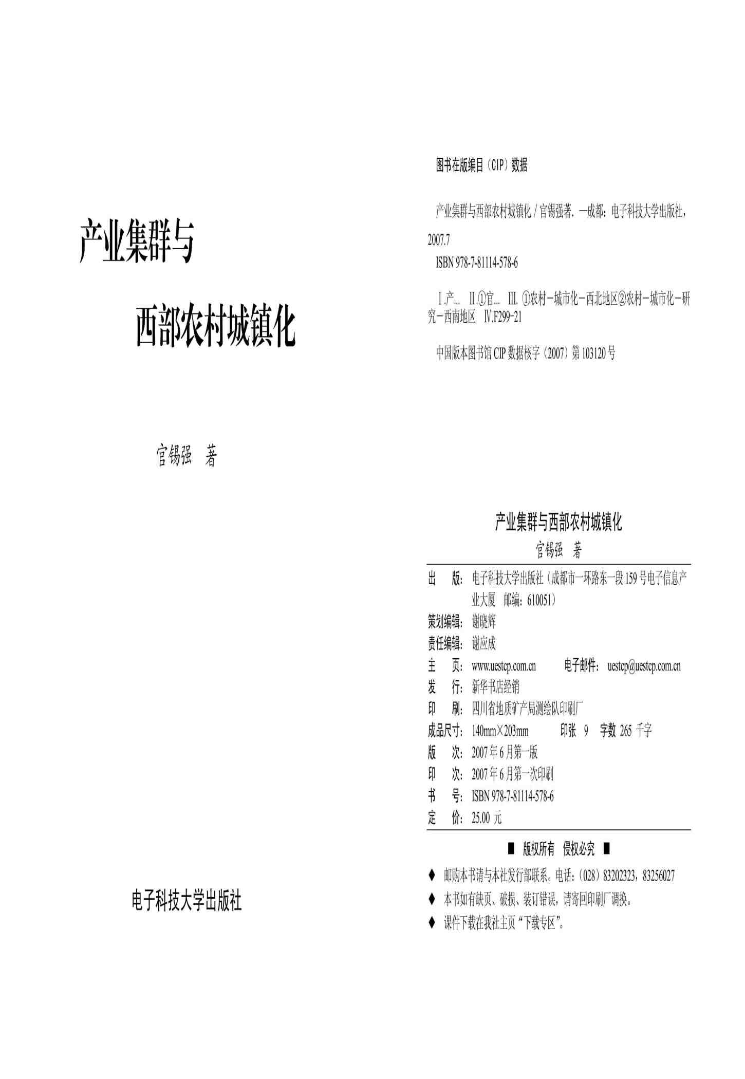 产业集群与西部农村城镇化