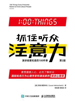 从小到大,我们被不止一个出色的演讲所打动和激励,这些演讲深刻地影响了我们,使得世界变得更好。从技能掌握的角度来说,演讲和其他技艺一样,都需要经过刻意练习,才能不断精进。从本质上说,演讲实际上讲者与观众在同一场域进行沟通的过程,而要达到激励听众行动的目标,就有必要深入地了解听众。 《抓住听众注意力 演讲者要知道的100件事 第2版》结合脑科学、行为心理学的前沿研究成果,阐述了人们学习、思考和行动的机制与心理动机,并告诉我们如何抓住听众心理来展开演讲。同时,本书还完整地告诉我们,如何打造一场精彩的演讲,与之匹配,作者还帮我们制订了一个90天改进计划。 对听众如何思考、认知、观察、反应、做出决定等方面了解得越多,你就越能够将信息、鼓舞和激励融合在一场演讲中。了解了听众之后,你将会知道如何改进技艺,并发表一场震撼人心的演讲。